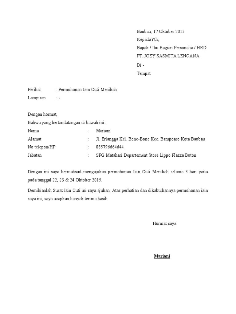 Contoh surat permohonan cuti kerja. Contoh surat permohonan cuti kerja. Nah, glints punya 4 contoh surat cuti kerja untuk beragam alasanmu, yaitu sakit, melahirkan, berkabung, dan cuti tahunan. Contoh surat pernyataan cuti wajib di tulis dengan format yang benar dan jujur agar pengajuan dapat di setujui oleh atasan. Talenta, aplikasi payroll berbasis online permudah pekerjaan hr! Yuk, langsung saja simak dengan baik ya! 3 contoh surat izin sakit tidak masuk sekolah kerja. Best resumes and templates for your business. Ada waktu dimana kita tidak bisa selalu masuk bekerja karena beberapa faktor. Berikut ini adalah 2 contoh surat cuti kerja dalam bahasa inggris beserta artinya. Dengan adanya surat ini saya hendak bermaksud untuk mengajukan permohonan cuti kerja selama 5 hari terhitung mulai tanggal 10 september 2019 dikarenakan berduka karena kematian keluarga (nenek). Semoga artikel ini bisa bermanfaat buat anda, baik untuk menambah wawasan pengetahuan anda maupun untuk digunakan sebagai referensi. Diposting oleh unknown di 9:08:00 am.