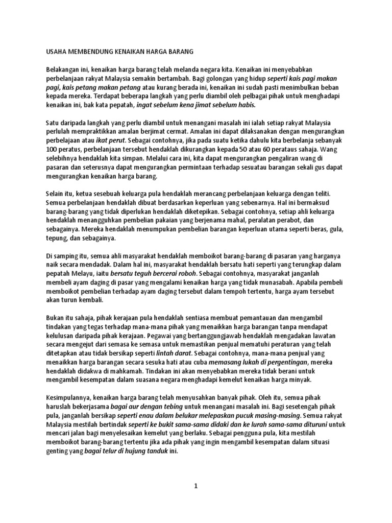 Karangan Isu Kenaikan Harga Barang Modul Karangan Bm Spm Pdf Document Salah Satu Informasi Yang Berperan Penting Adalah Kenaikan from demo.pdfslide.net Pasalnya, awal tahun ini masyarakat disambut dengan kenaikan harga barang konsumsi serta hingga tarif transportasi. Sebelum menaikkan harga produk, penting bagi anda untuk memastikan seberapa besar jaminan kualitas produk yang anda tawarkan. Cara pertama ini punya kelebihan dan kekurangan. Diperoleh p (harga) keseimbangan sebesar 16. Di segenap empat penjuru negara ini tentang isu kenaikan. Inflasi dapat terjadi karena jumlah uang beredar lebih banyak daripada yang dibutuhkan. Kenaikan harga barang keperluan akan menjejaskan perbelanjaan pengguna. Jika sebuah pernikahan tak bisa lagi dipertahankan, maka jalan terakhir adalah dengan bercerai.